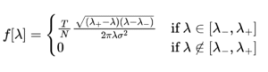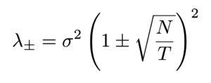 平均0、分散 σ^2 の独立同分布(IID)に従うランダム行列 X(サイズ T × N)から作成された相関行列の固有値 λ は、TとNが十分に大きいとき、ある特定の確率密度関数(PDF)に従うことが知られています。