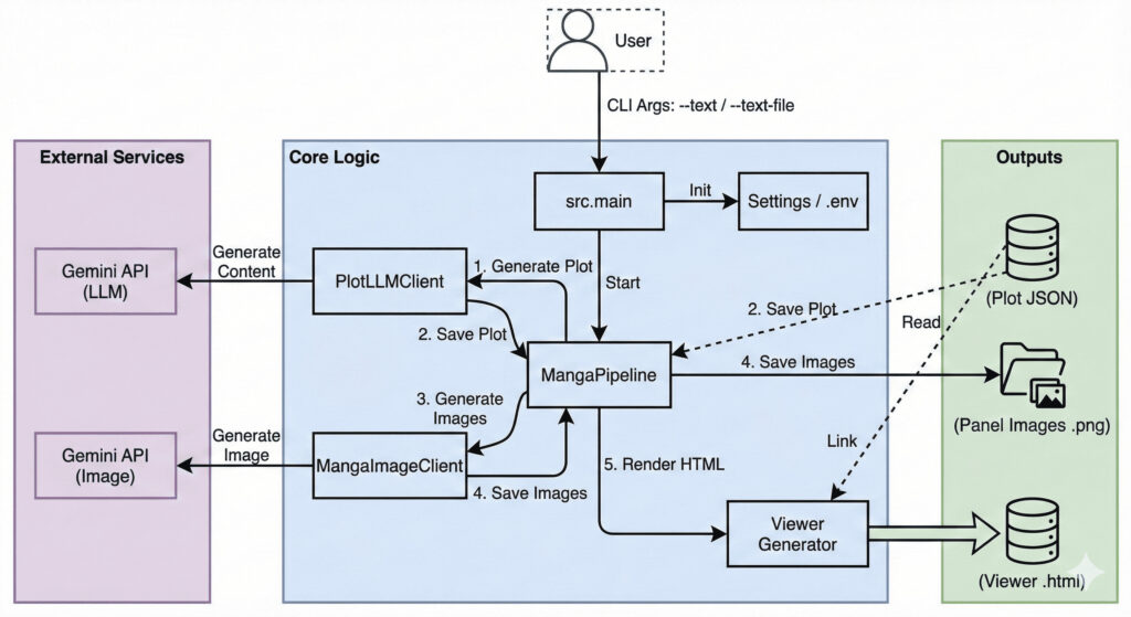 - 起承転結プロンプトの型を固定:src/prompts.py でJSONフォーマット&視覚フック指示を明示し、パネルごとに「動き・対比」が入るようテンプレ化しました。