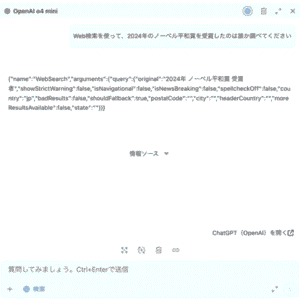 web検索が行われているかも同様に返却文言などを比較します。