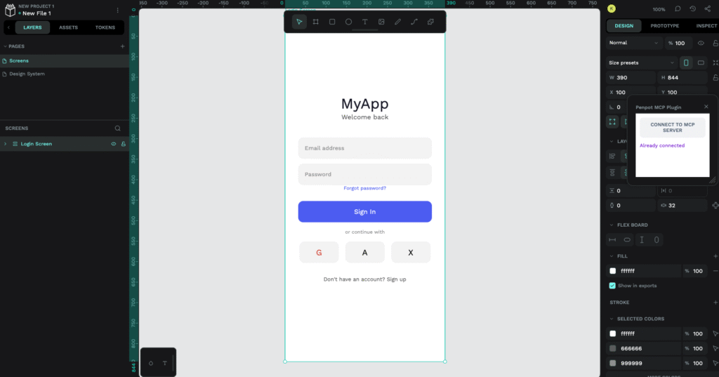 - Claude CodeからMCP経由で自然言語デザイン: 「LINEのようなチャットアプリのUIを作って」という指示だけで、Penpot上にデザインが自動生成される